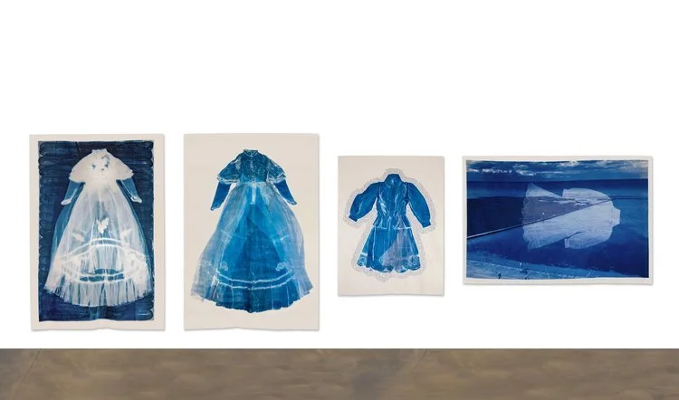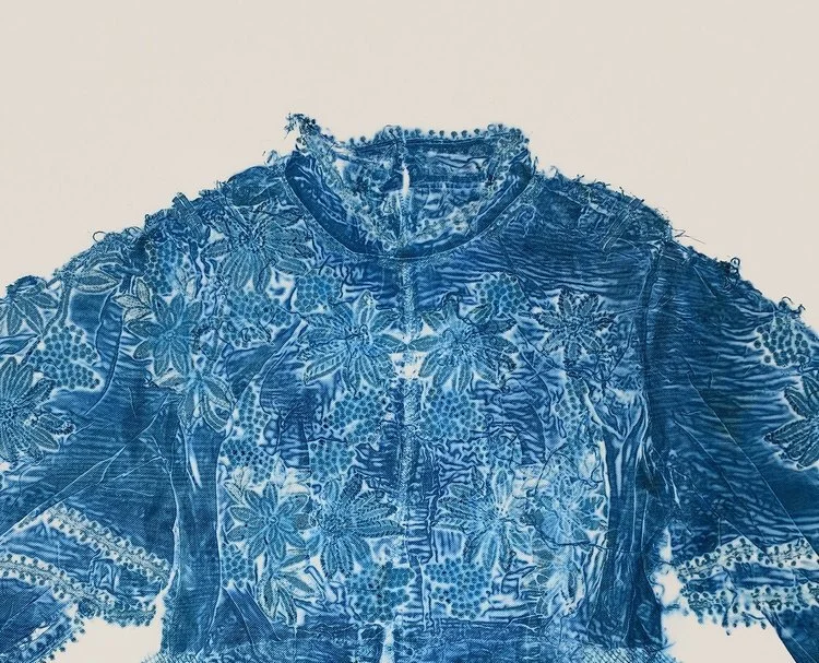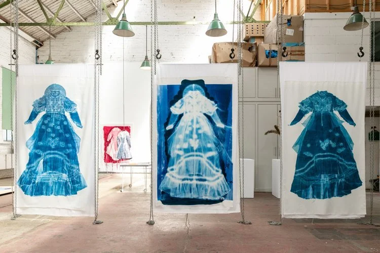 In broad blue brushstrokes, Blue Dress Meditation is a poem about memory, desire and longing, and the ways dresses, bodies and art-making hold, process and transform these emotions. It began with a dream I had in August of an enormous blue dress spreading across the horizon. From that dream, other memories and imaginings of blue dresses gathered. A single stanza could not contain them all, so I pieced together the poem with asterisks, or ‘stitches’. The lines ‘Blue dresses of gigantic feelings/ girls swimming in tidal sea pools’, were inspired by Shelly Goldsmith’s Dresses for Giants exhibition in Margate, which I visited in September 2022, just after finishing my Masters — a liminal period between full-time education and stepping into working life. The scale, colour and display of Shelly’s dresses left a magical, lasting impression on me.