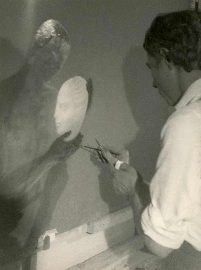 “You realize that his hand was not made to occupy itself with anything else in this world. Bălaşa hunts and devours the model. He touches with his gaze all the silences and distances of the model. He gradually ignites the spiritual lights within it. He paints with all his strength, as one runs with all one’s strength. The studio fills with a suffocating tension. You witness something so intimate that you feel indecent seeing the artist elevate the work patiently […] He constantly controls the work, [...] moving his torso left and right, head tilted back, thus inspecting the resurrection of the work. His mouth twists continually, moved by who knows what impressions. He is charged with a great and perceptible power, a contained active force, when he paints. And with a natural pride, with a pure and fiery momentum.”